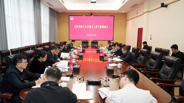 本网讯(社会服务处 裴昌胜)4月14日上午,科技创新与社会服务工作专题调研会在第一教学楼401会议室举行。校党委书记兰勇主持调研会,校党委副书记陈光辉、副校长伍小松出席。党政办、人事处、发规学科处、计财处、资实处主要负责人,科技处、社科处、社会服务处班子成员参加会议。